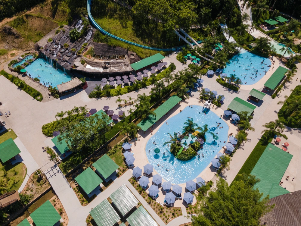 Equipados com churrasqueira, os quiosques oferecem o ambiente ideal para quem deseja relaxar e ao mesmo tempo desfrutar de todas as atrações do parque.